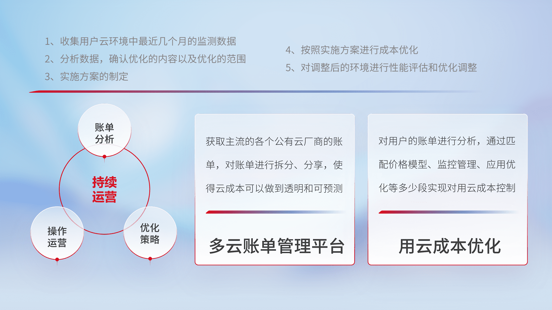 监控业务系统资源开销,,对资源的消耗精确计量,,实现费用的透明化管理,,,不断提升资源使用率,,,,调整资源购买方式,,,降低资源费用成本,,,,用云成本可预测、、、用云费用可优化,,云资源配额有据可依。。